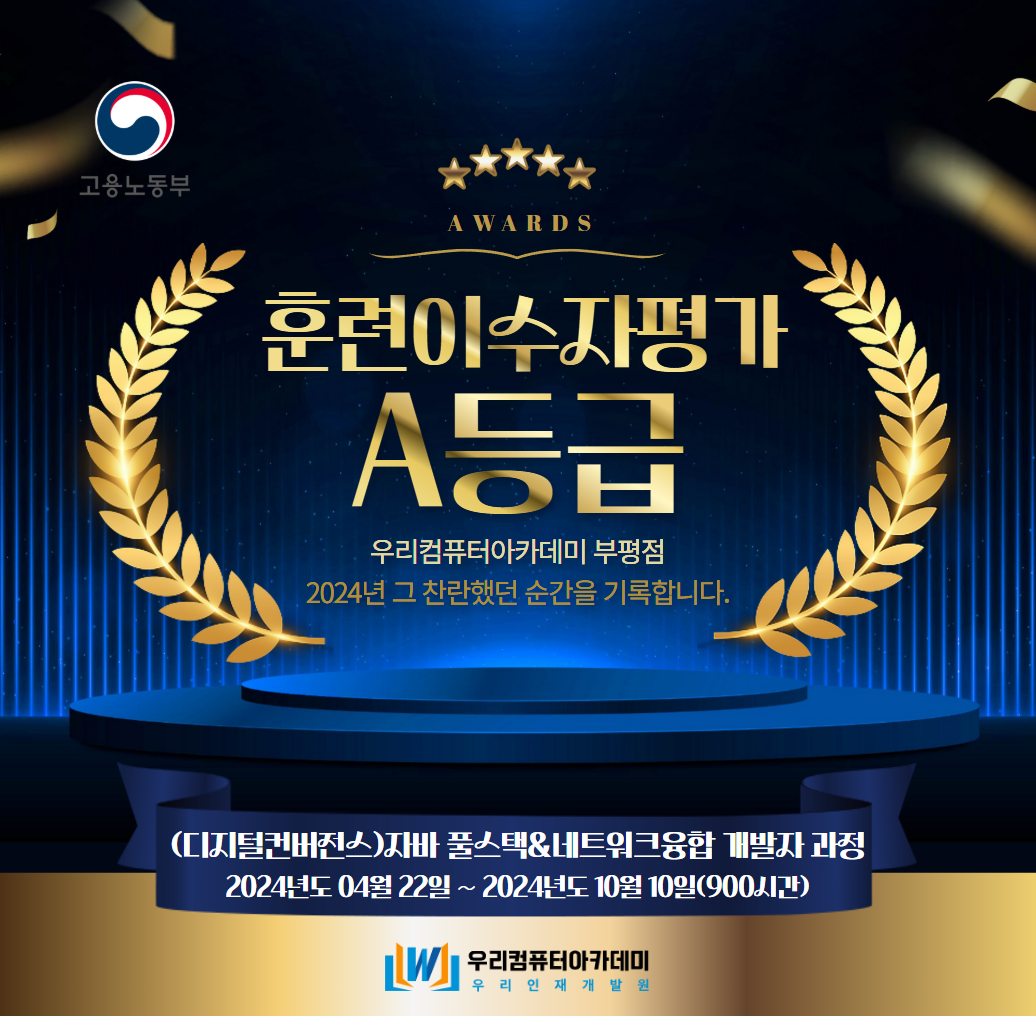 우리컴퓨터아카데미 부평점 훈련이수자평가 A등급